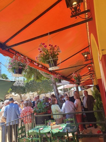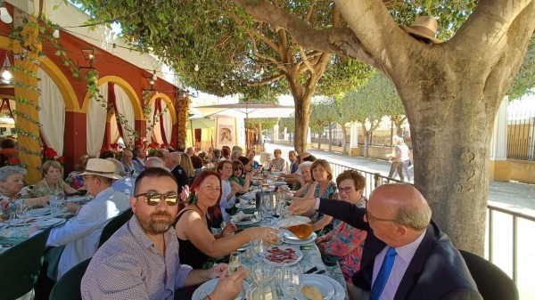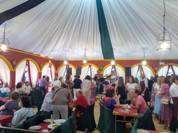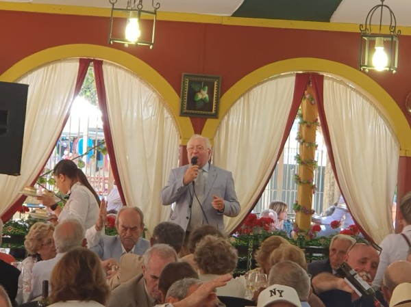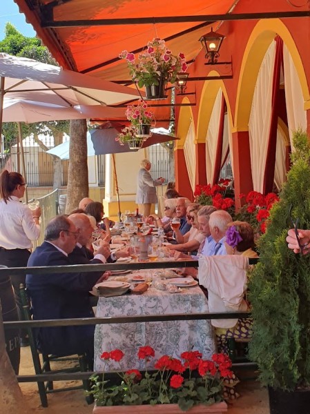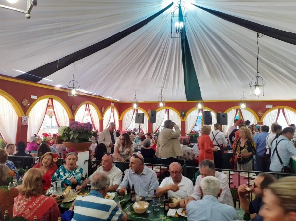 Para nuestra Asociación la fiesta comenzaba el sábado 4 de mayo con el Almuerzo de Inauguración de Socios con una asistencia de 171 personas que disfrutaron de un buen rato de convivencia y de un exquisito menú servido por nuestro casetero, el lebrijano Fernando Jiménez. Palabras de salutación y bienvenida a cargo del Vicepresidente en ausencia por motivos familiares del Presidente.