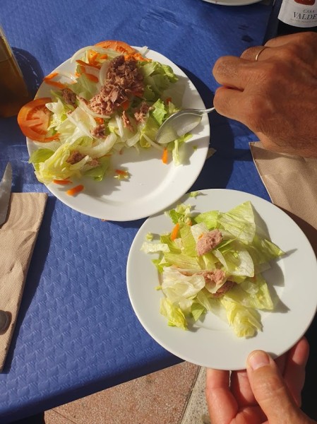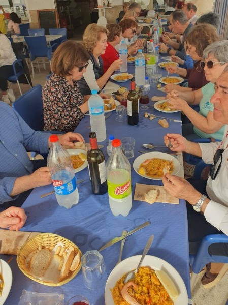 De vuelta al autobús y nos dirigimos hacia Barbate, al restaurante El Mirador donde teníamos concertado el almuerzo. Un local al lado de la playa con una terraza amplísima. Y qué decir del menú¡! Genial por lo que comimos, la atención recibida y la eficacia en el servicio. Todo un acierto de M. Carmen compañera de la directiva que mereció nuestro aplauso. Por último, agradecer al presidente de la Casa por permitirnos realizar la actividad a pesar de no haber llegado al número mínimo de participantes.