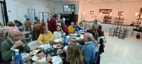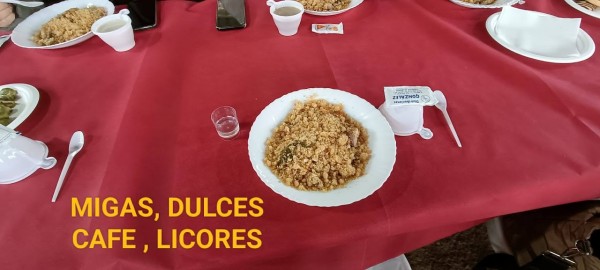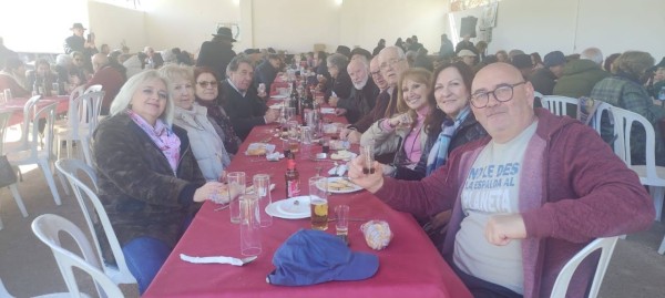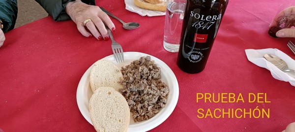 Sobre las 12 h. regreso al lugar de la matanza para comenzar degustando las pruebas de salchichón, chorizo, asados pestorejo, filetitos. para culminar sobre las tres de la tarde con un exquisito Cocido Matancero y el correspondiente postre. Música ambiente y una tarde maravillosa en la que se pudo disfrutar de un sol espléndido.