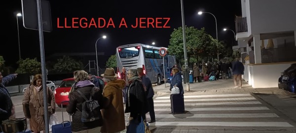 Avería de uno de los autobuses y larga espera hasta que llegara otro para trasladarnos a Jerez, donde finalizábamos nuestro viaje sobre las 21 horas.