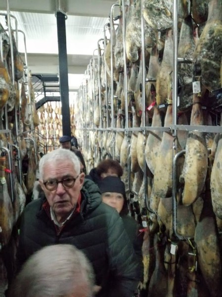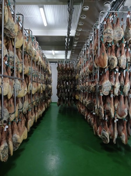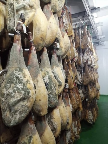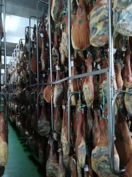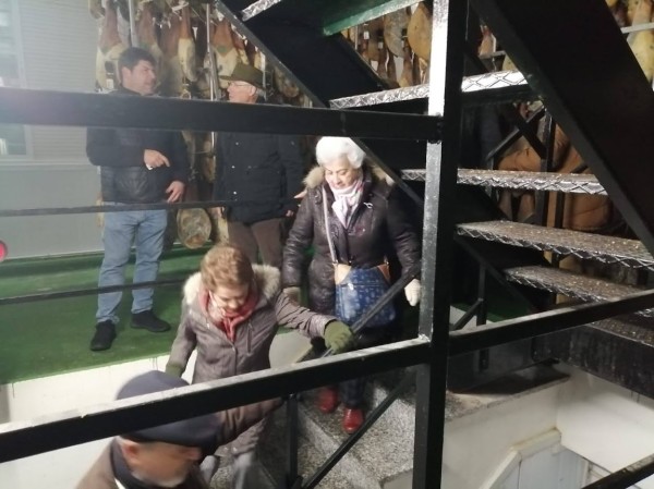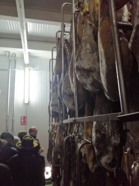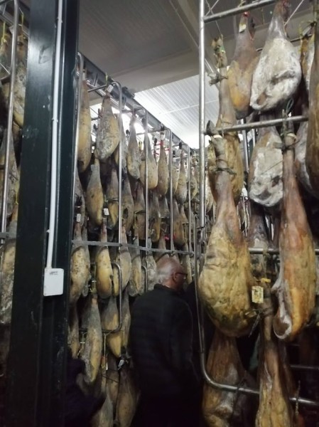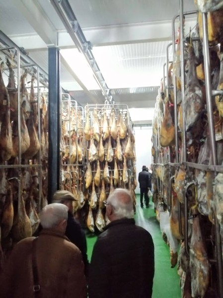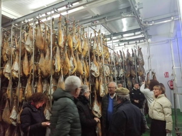 Sobre las 11 de la mañana y para dar tiempo a la preparación de las carnes para las pruebas y asados, nos trasladamos en autobús a las visitas programadas: Embutidos Morato (secadero) y centro de la localidad y mercado.