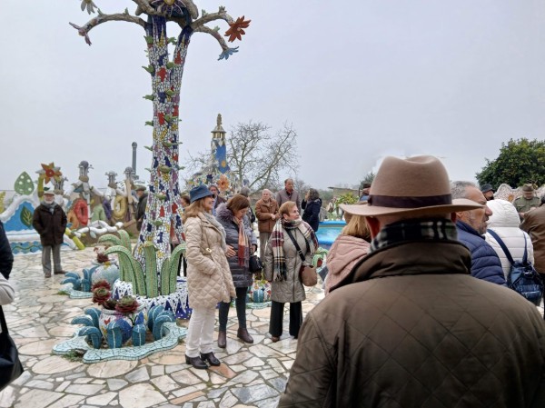 El domingo día 9 desayuno tempranero en los hoteles para poder estar a las 9,30 horas en las puertas del Capricho de Cotrina en los Santos de Maimona. Retraso por despiste de los dueños de cerca de una hora. No obstante, mereció la pena tan larga espera.
