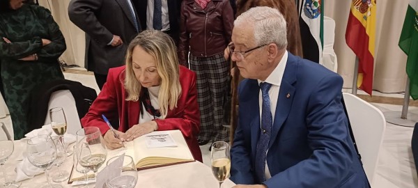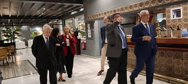 Finalizadas las intervenciones se hizo sonar el Himno de Extremadura, brindándose con una copa de cava por la dos Comunidades, Extremadura y Andalucía.