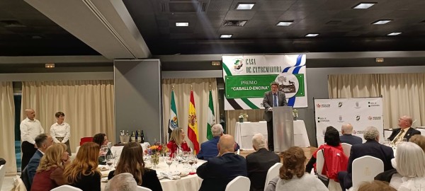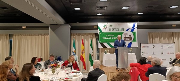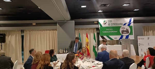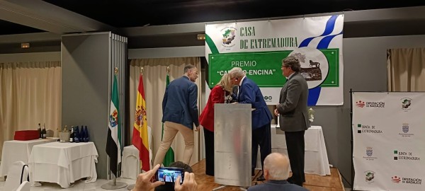 El acto tuvo lugar en el transcurso de la cena organizada con motivo del 43 Aniversario de esta Casa Regional Extremeña.