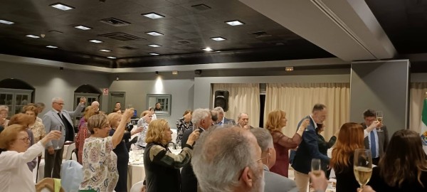 A los postres de la cena el Presidente de la Asociación, José Antonio Rico, tomó la palabra para agradecer y destacar el buen trabajo realizado por todos durante estos 43 años de existencia, mostrándose muy orgulloso por haberse logrado la plena consolidación e implantación social, lo que sin duda agrega más valor a las vidas de cada uno de los que lo hicieron posible, aportando su trabajo y esfuerzo para lograr un importante objetivo. Agradeció así mismo al pueblo de Jerez el haber sido puente entre culturas y unirnos en la diversidad, demostrando que la hermandad entre pueblos es la mayor riqueza que podemos celebrar. Se ofreció igualmente a apoyar las dos candidaturas de Jerez como Capital Gastronómica 2026 y Capital Europea de la Cultura en 2031, un reto dijo que debe hacerse desde la participación activa de la ciudadanía y todos los agentes sociales y culturales.