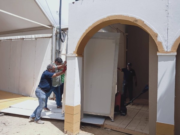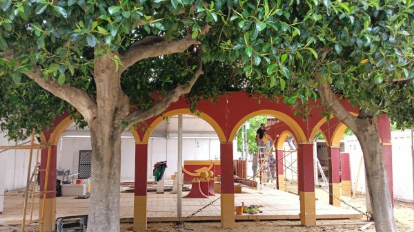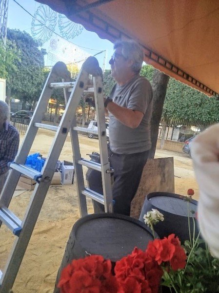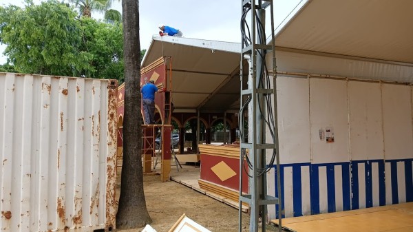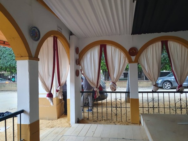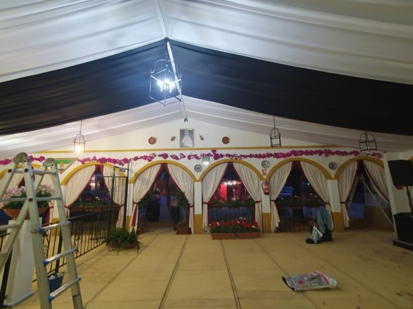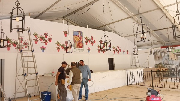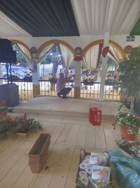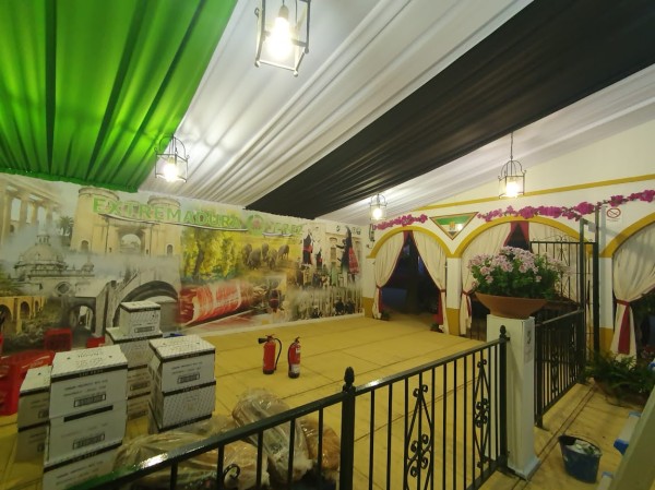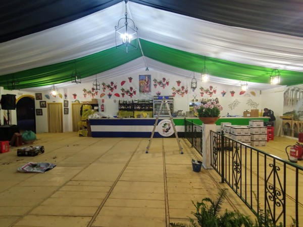Muchos cambios previos y mucho trabajo y reuniones para dar forma a una caseta que cada año nos va exigiendo más con muchas exigencias debido a la nueva normativa impuesta por el Excmo. Ayuntamiento. Continuamos con el mismo montador mayor coste de montaje y mucho control a los que montaban por parte de dos directivos; nuevas ideas decorativas relacionadas con nuestra integración en una sociedad modelo de acogida y nuevas adaptaciones un año más a las nuevas estructuras de módulos, Este año se nos obligó a ubicar los servicios dentro del espacio de caseta con la consiguiente pérdida de espacio en cocina y barra; con servicios individuales para hombres, mujeres y minusválidos (casualmente ninguno hizo uso de él). También hemos seguido con el mismo casetero, que creemos ha colmado en buena parte las expectativas y otras muchas variantes para montar una caseta restaurante para 7 días de feria con elevados gastos, muchos obstáculos y alguna crítica inmerecida por desconocer la realidad y que incluso nos hacen pensar si merece la pena tanto esfuerzo, dedicación y trabajo. También lo pensamos en mayo 2024 y aquí estuvimos de nuevo.