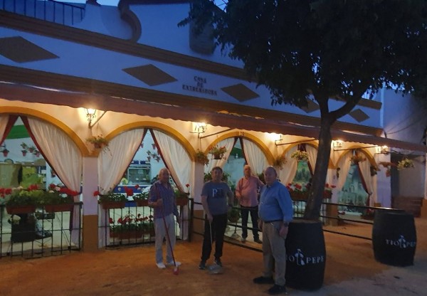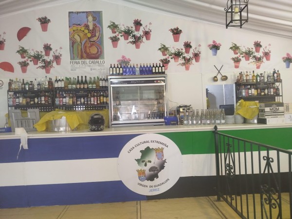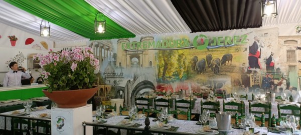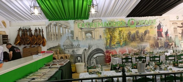 Como el año pasado nuestra caseta gozó de tres zonas diferenciadas que han hecho peculiar a nuestra caseta: una la zona de socios, dedicada a Extremadura y Jerez con un fantástico mural dedicado a la Comunidad y nuestra ciudad de adopción; otra central con un ambiente abierto y acogedor en el que se podía observar como las banderas de Jerez y Extremadura se fusionaban en la gran barra con un alegre mural en el que destacaba el cartel de la Feria 2025 dedicada al pueblo gitano y una tercera que dedicamos a Jerez en nuestra terraza lateral. Con ello hemos seguido fortaleciendo los lazos sociales, culturales y económicos con nuestra tierra de acogida.