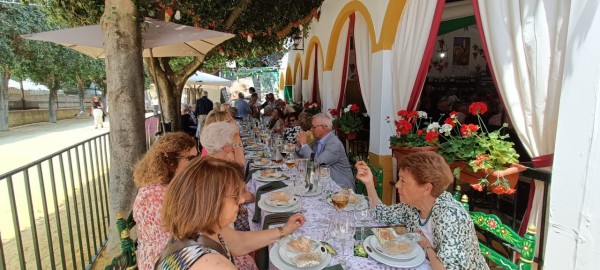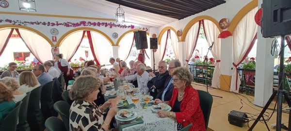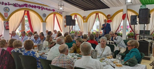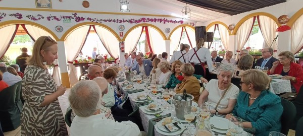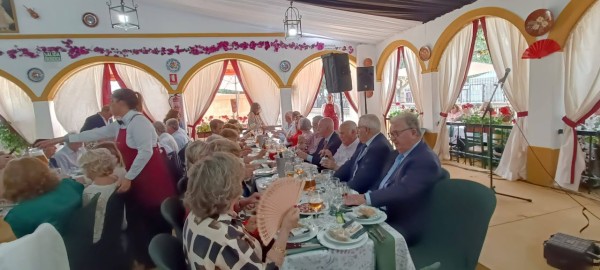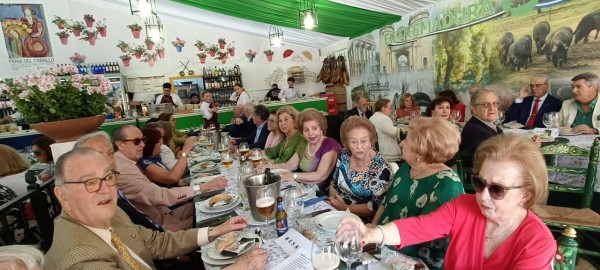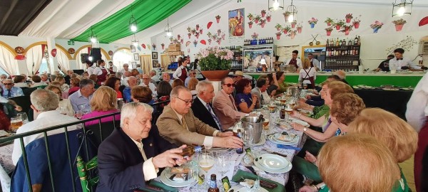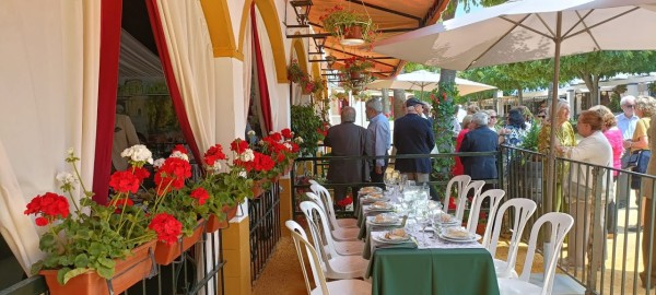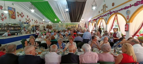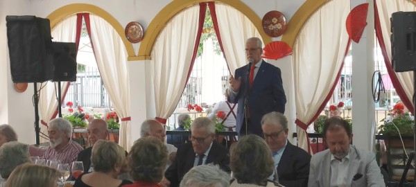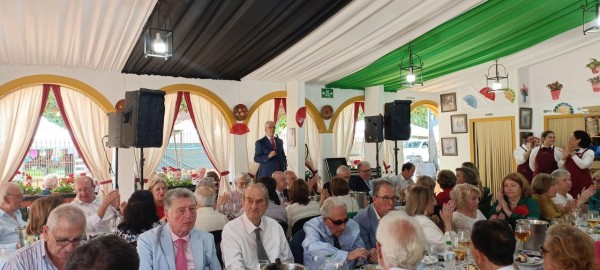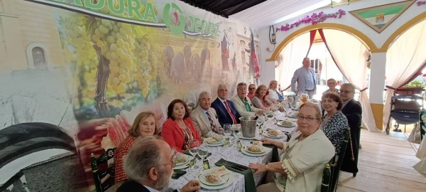 Para nuestra Asociación la fiesta comenzaba el sábado 17 de mayo con el Almuerzo de Inauguración de Socios con una asistencia de 153 personas que disfrutaron de un buen rato de convivencia y de un exquisito menú servido por nuestro casetero, el lebrijano Fernando Jiménez. Palabras de salutación y bienvenida a cargo del Presidente con un emotivo recuerdo para los que nos abandonaron y trabajaron muy en serio para que esta Asociación tuviera una caseta distinguida y acorde con una feria tan importante.