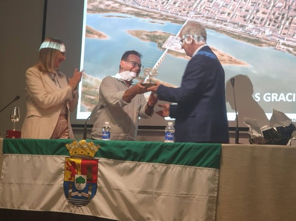 A continuación, el Presidente de la Casa Regional hizo entrega en prueba de agradecimiento de un catavino de plata a Trinidad Nogales y de una encina también de plata a Francisco Barrionuevo por su colaboración.