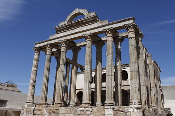Continúa su charla, hablando del Templo de Mérida, conocido popularmente como “Templo de Diana”. Era un templo consagrado al culto imperial y no a la diosa Diana. Su construcción también data del S. I a. de C época augustea. Planta rectangular y orientado al foro