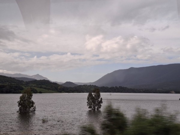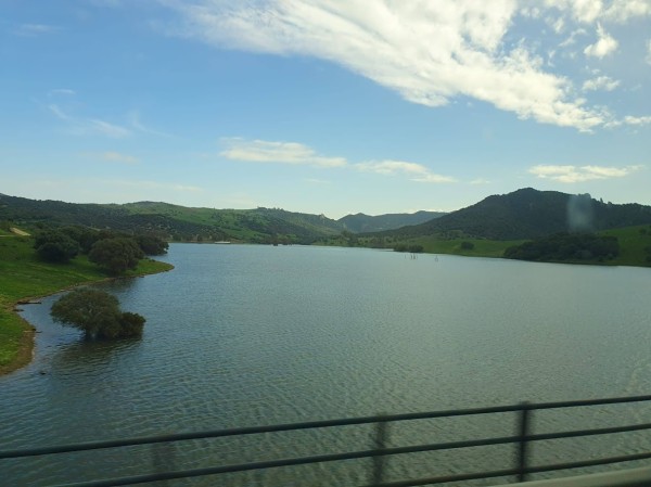 En el trayecto y camino de los Montes, pudimos disfrutar de unas vistas extraordinarias en el entorno del embalse de Guadalcacín muy repleto de agua tras las lluvias caídas este año.