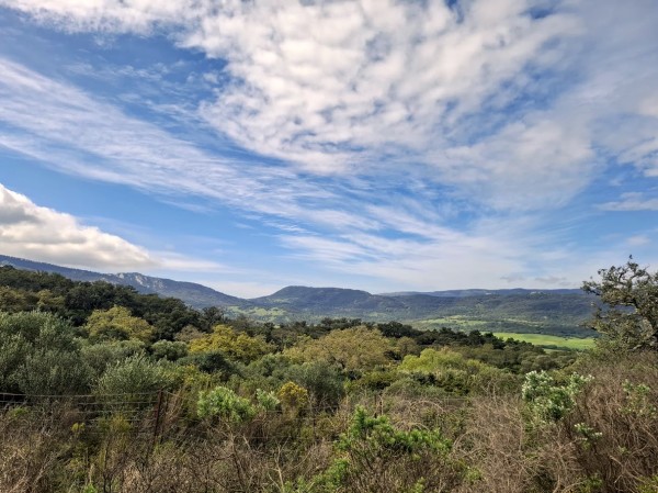 A nuestra llegada al sendero el día era espléndido y allí nos esperaba el guía de turismo rural Genatur que desarrolló un gran trabajo por su carácter polifacético y la facilidad con la que se desenvolvía convirtiendo la excursión en un ameno paseo y participando de las actividades. Magnifico paisaje desde el Tajo Gordo dentro de este privilegiado espacio natural de Jerez. Durante todo el recorrido disfrutamos de las enriquecedoras explicaciones del guía, así como de la vegetación autóctona, fauna y flora muy rica ya en este primer día de primavera.